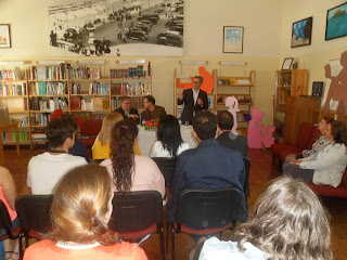 Durante o dia, os alunos dirigiram-se à Biblioteca entregando o cartão e diziam o  nome do autor,em troca recebiam um pequeno prémio.